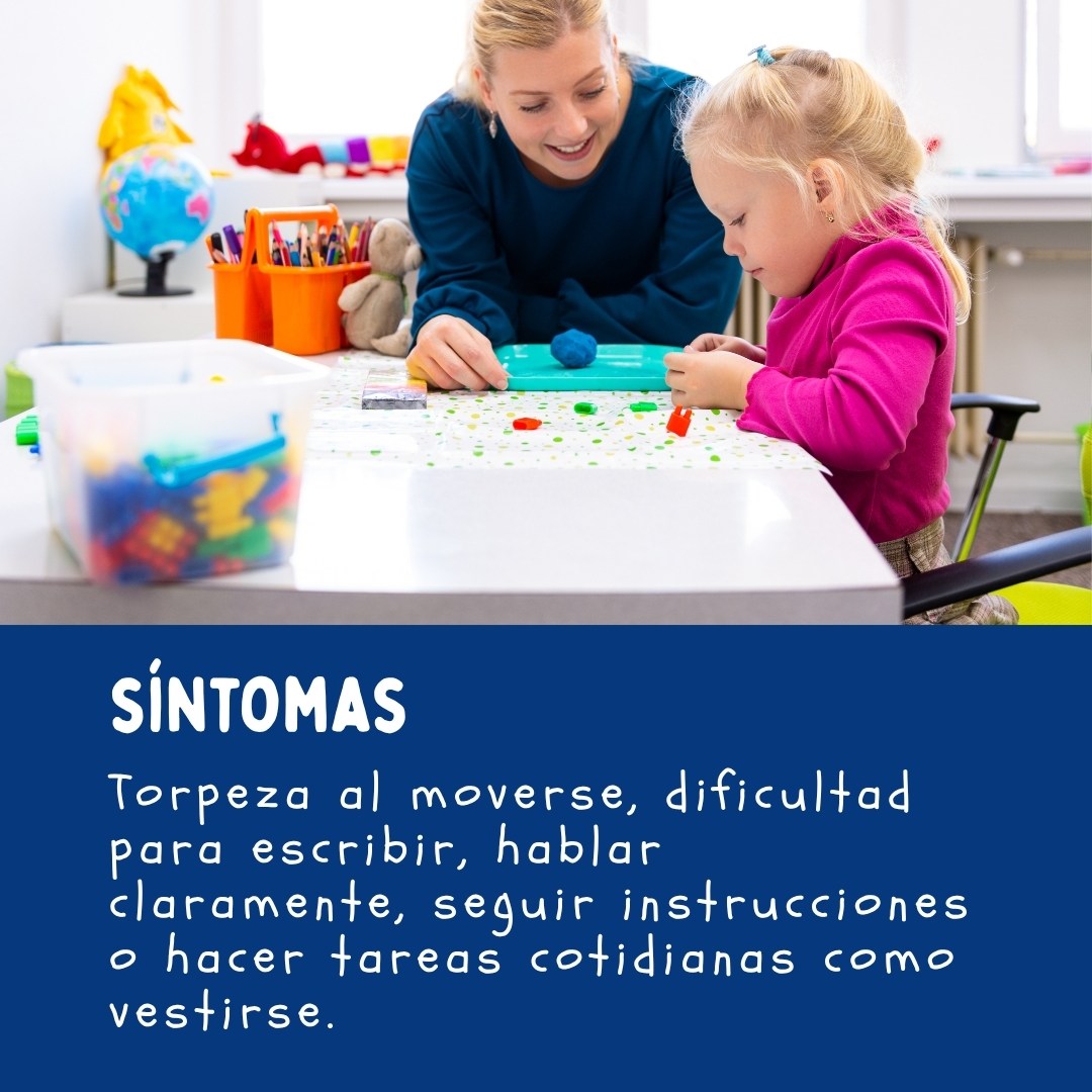 Los síntomas de la dispraxia pueden variar dependiendo de la edad y el tipo de tareas que el niño enfrente, pero algunos signos frecuentes incluyen: