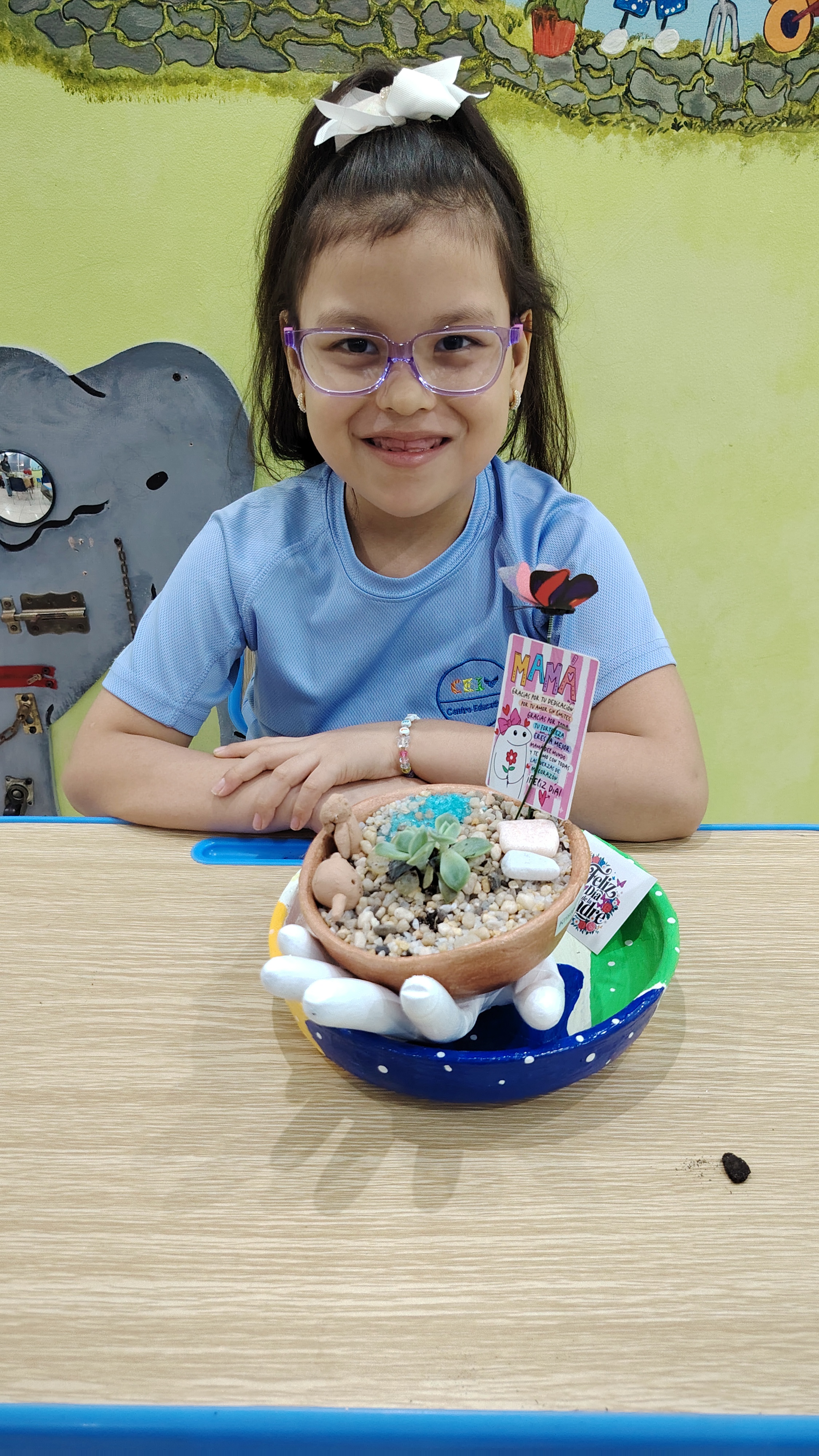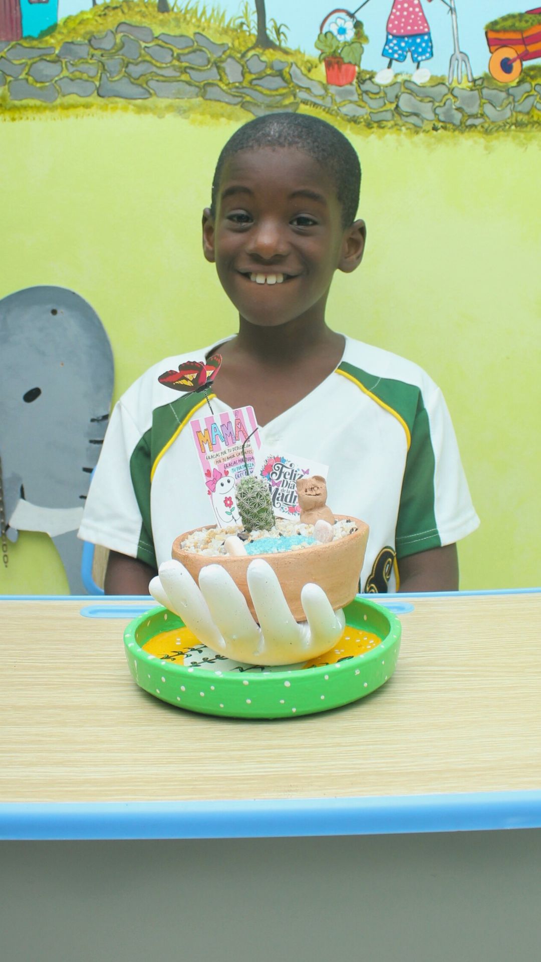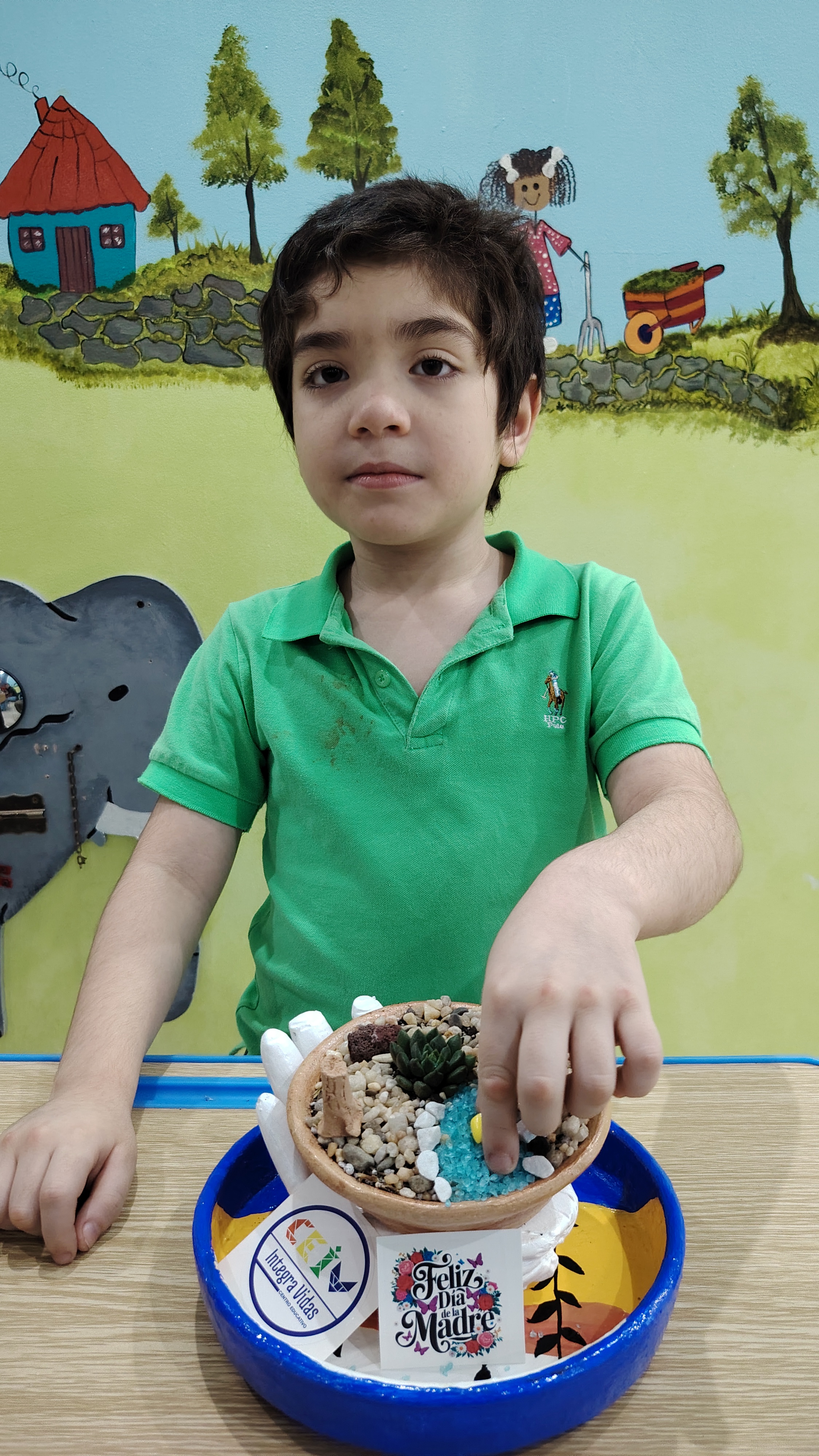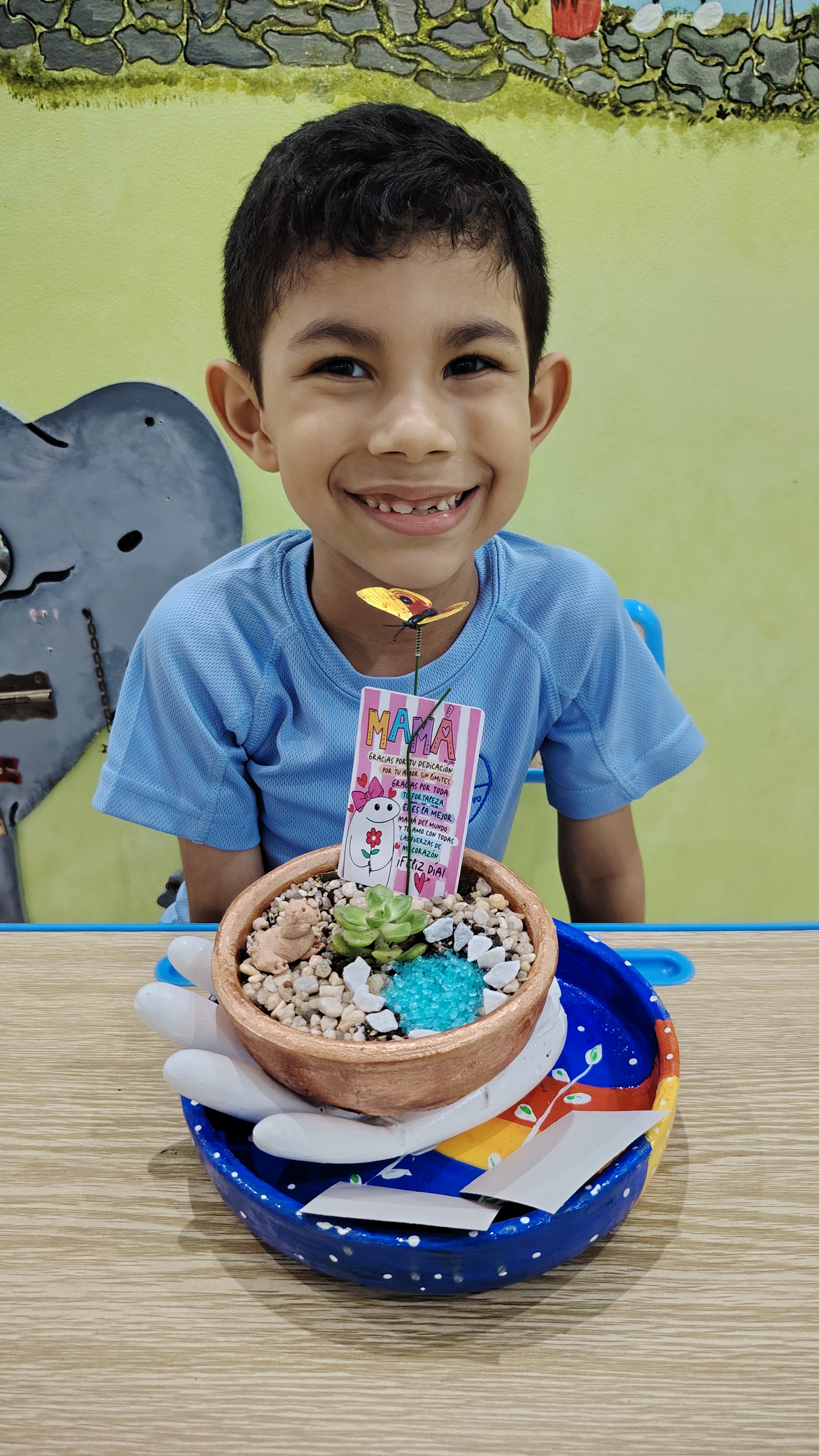 El resultado fue un regalo único: un terrario hecho completamente por los niños, desde la creación de la vasija en arcilla hasta la siembra final. Un obsequio vivo que simboliza cuidado, paciencia y amor.