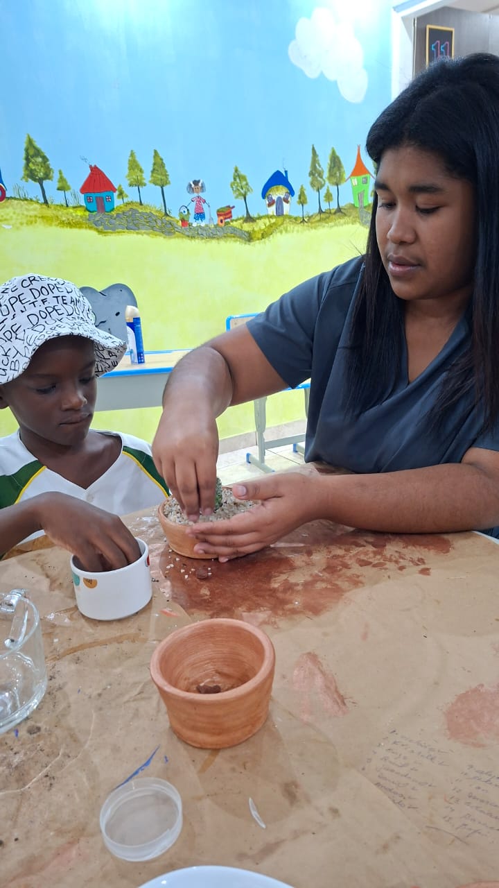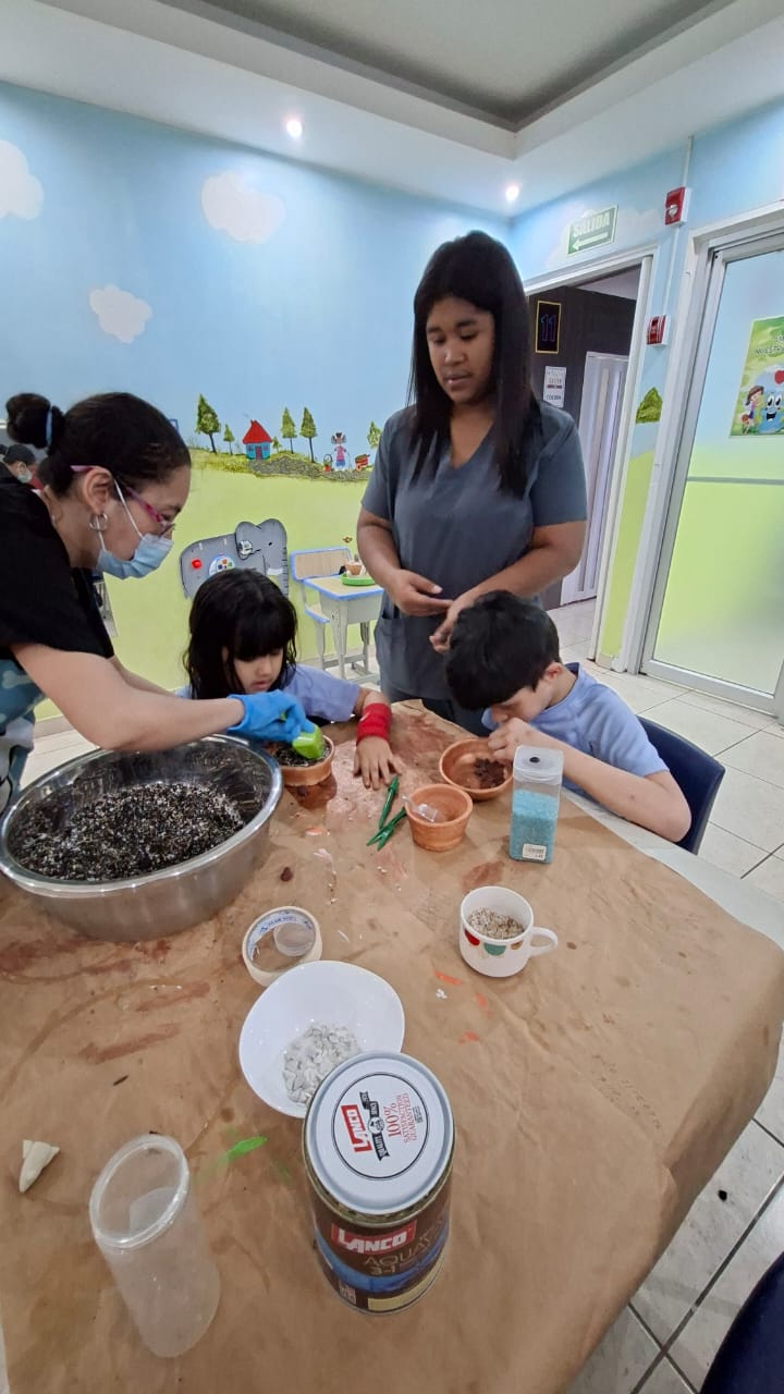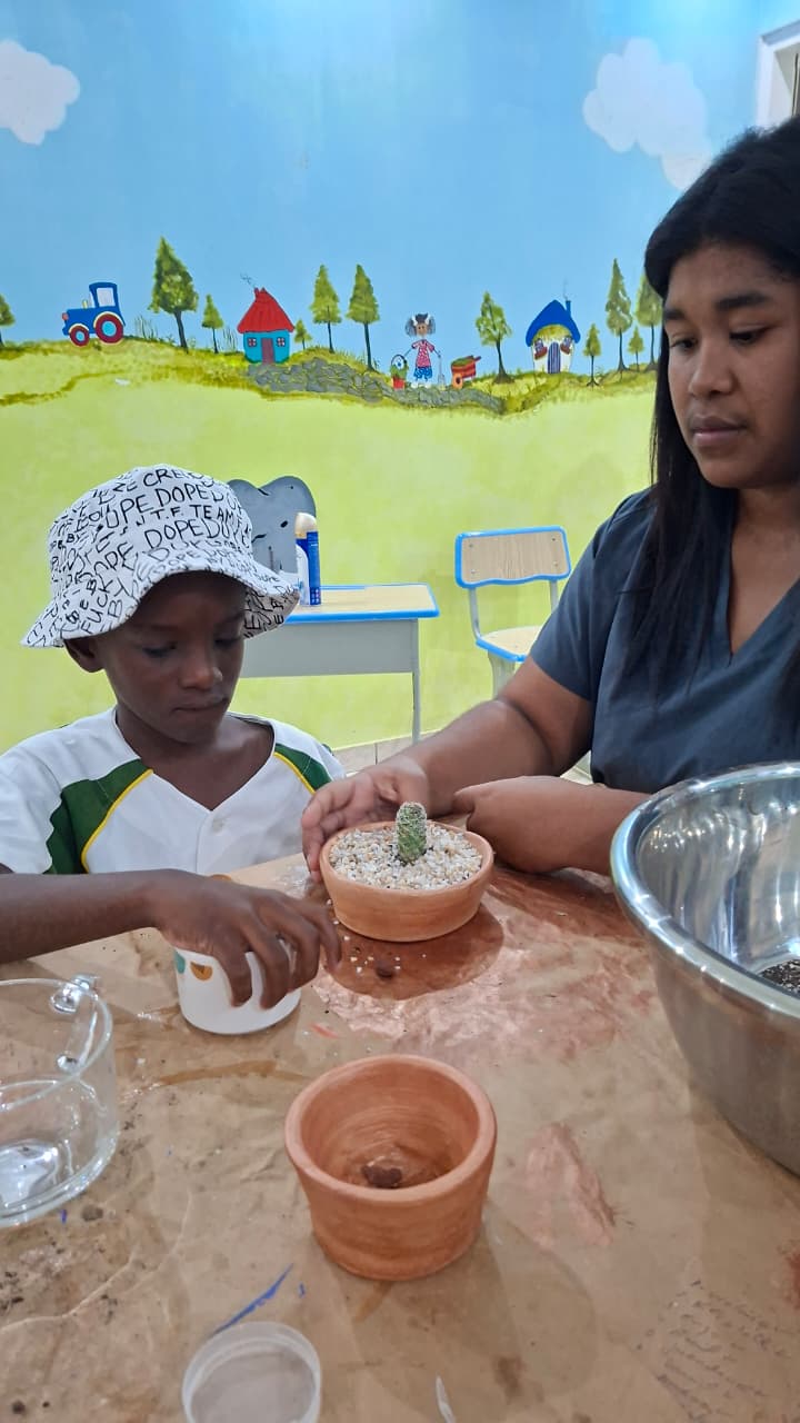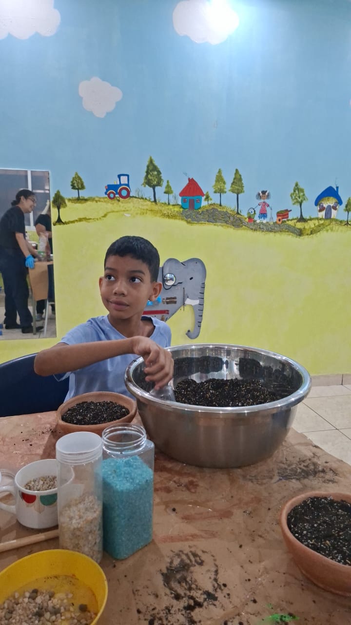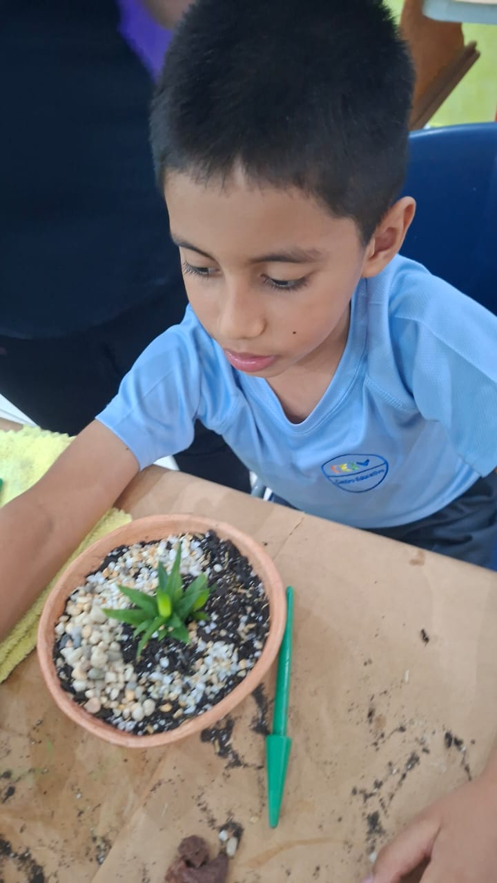 El resultado fue un regalo único: un terrario hecho completamente por los niños, desde la creación de la vasija en arcilla hasta la siembra final. Un obsequio vivo que simboliza cuidado, paciencia y amor.