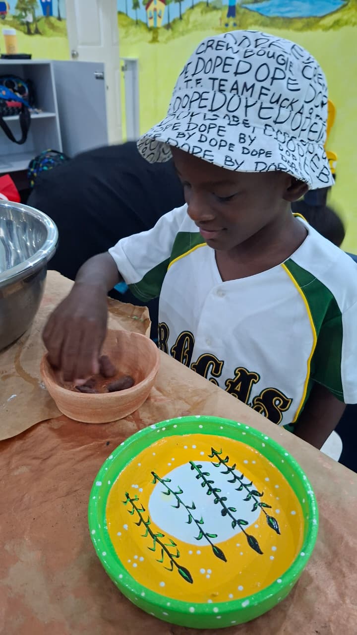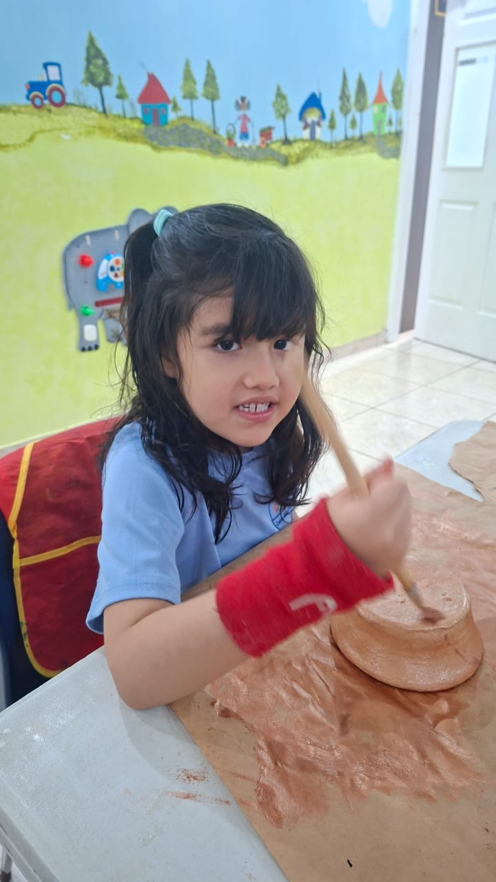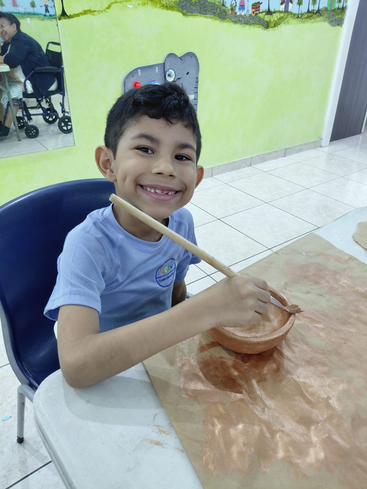 La primera etapa comenzó con la visita del escultor panameño Daniel Murillo, profesor universitario y experto en torno, quien guió a los niños en la creación de sus propias vasijas utilizando arcilla. Esta experiencia, realizada en pequeños grupos durante varios días, permitió trabajar habilidades esenciales como: