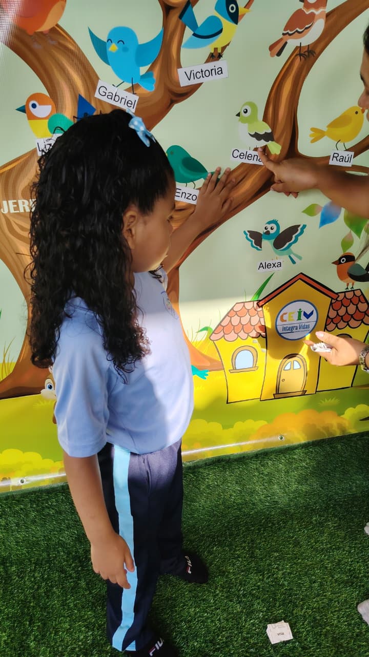 Cada estudiante debía elegir su ave y colocar en ella su nombre. Poco a poco, el árbol comenzó a llenarse con los nombres de todos los niños, simbolizando que cada uno tiene un lugar único dentro de la familia Integra.